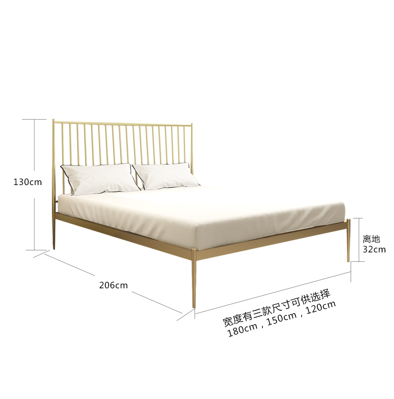 商品名称:北欧铁艺床欧式创意家居斯黛拉金色1.5米1.8m双人铁床简约公主床
