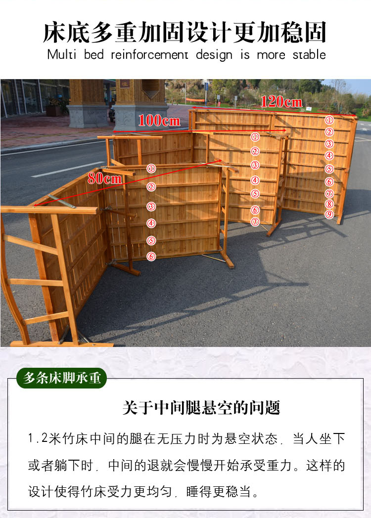 商品名称:云峰竹床折叠床单人床午睡床 多功能简易经济型凉床家用1.2米无