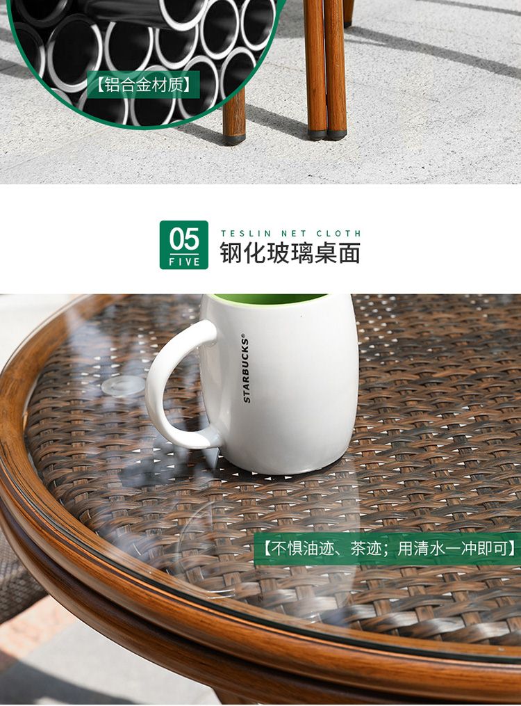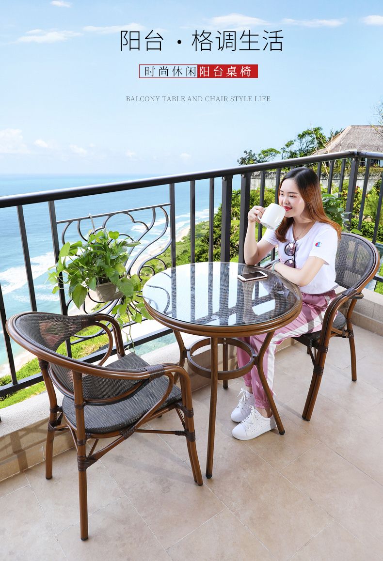 商品名称:阳台桌椅三件套户外组合简约现代藤编小茶几庭院室外咖啡厅藤椅子
