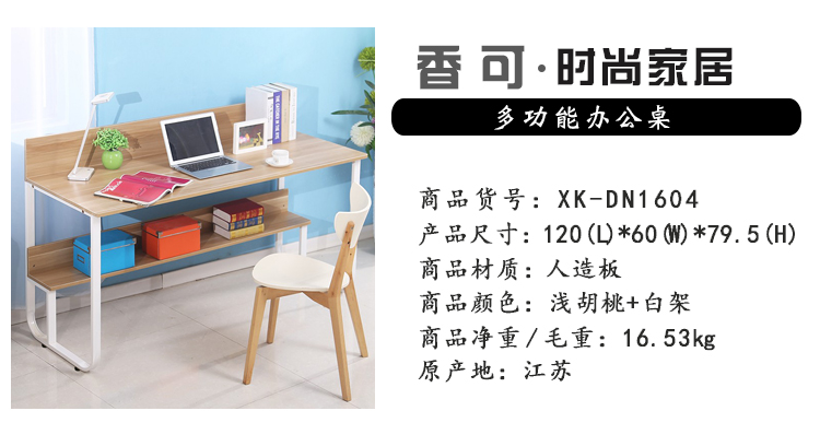 商品名称:香可台式电脑桌学习桌带储物笔记本书桌办公桌浅胡桃白架