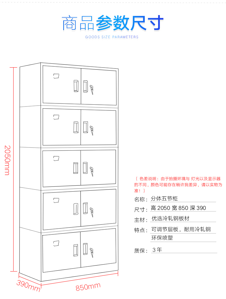 商品名称:中伟文件柜办公柜钢制铁皮柜资料柜档案柜储物柜分五节文件柜