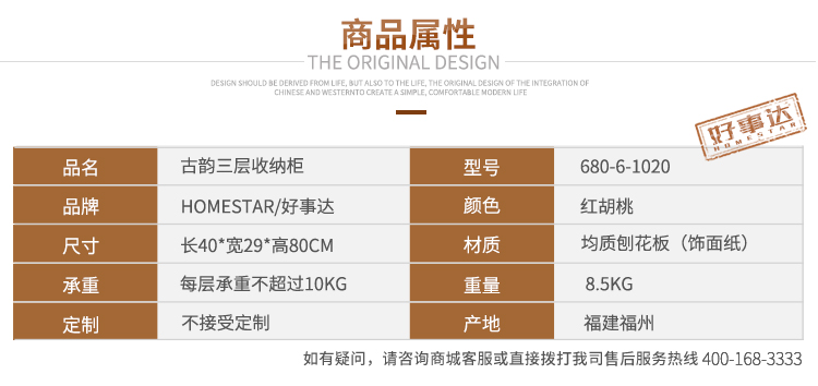 商品名称:好事达柜子储物柜 木质收纳柜 简易书柜书橱3层古韵1020