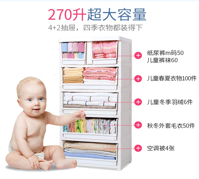 商品名称:也雅宝宝衣柜抽屉式收纳柜子儿童衣柜塑料整理柜衣服收纳箱多层