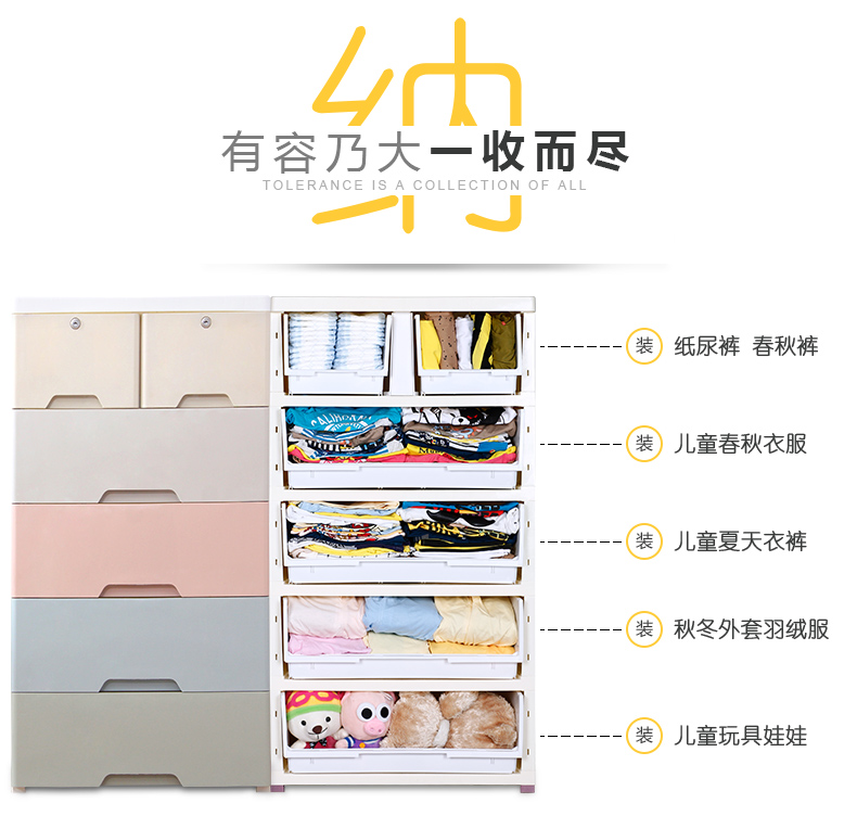 也雅宝宝衣柜抽屉式收纳柜子儿童衣柜塑料整理柜衣服收纳箱多层
