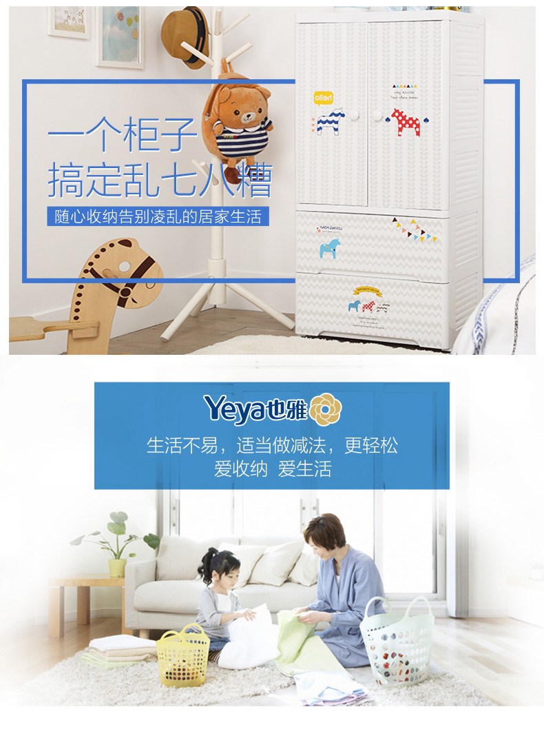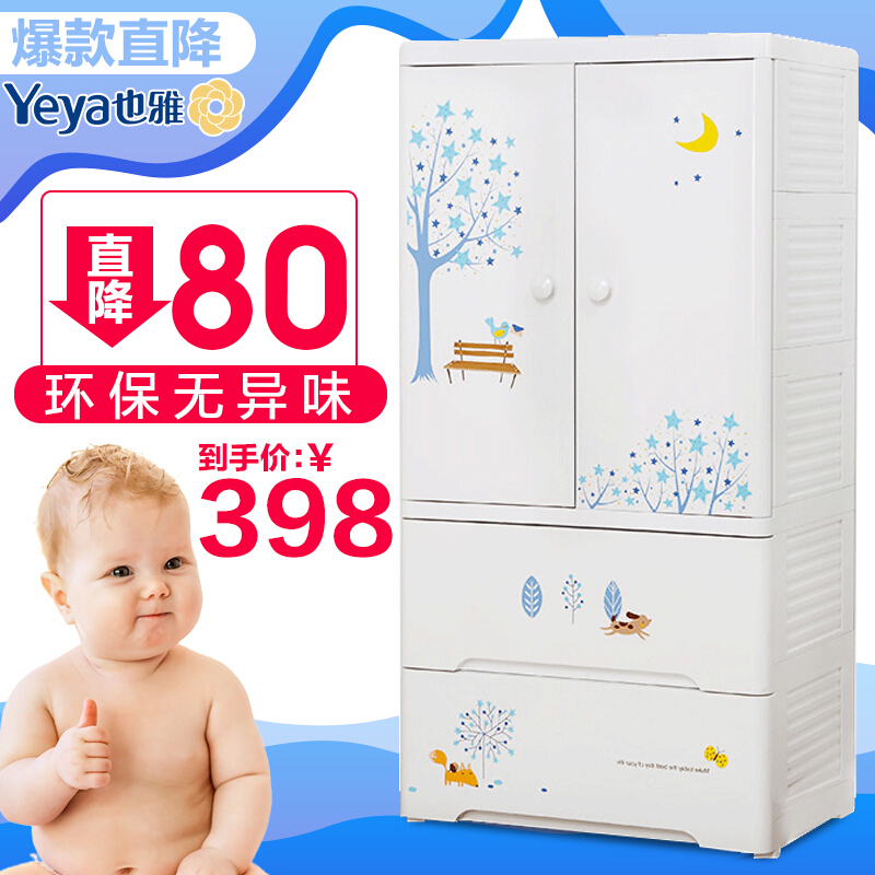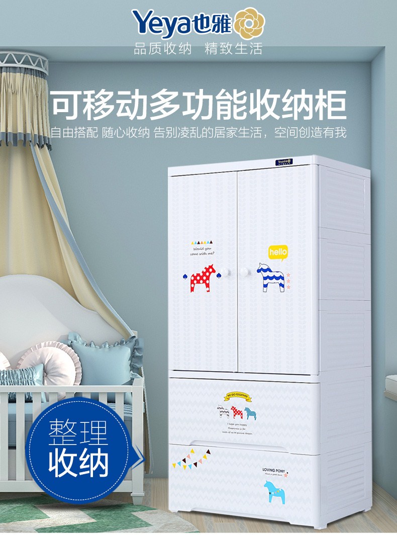 Yeya也雅宝宝衣柜抽屉式收纳柜塑料收纳盒儿童房衣服收纳箱物双开