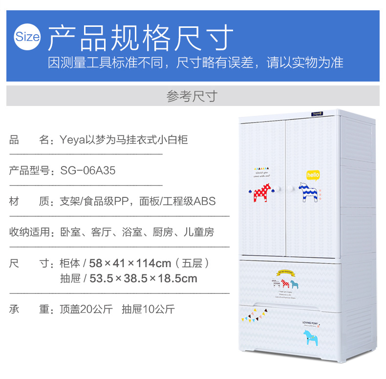 商品名称:Yeya也雅宝宝衣柜抽屉式收纳柜塑料收纳盒儿童房衣服收纳箱物双开