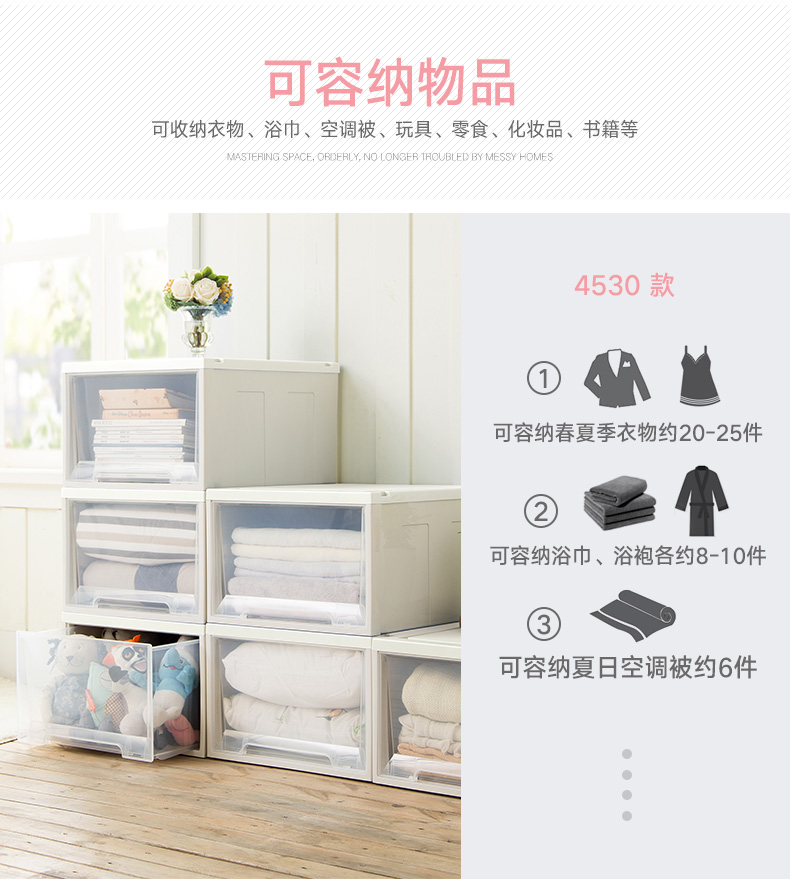 JEKO-JEKO透明塑料宝宝夹缝柜特大号3只装儿童衣柜收纳盒五斗柜