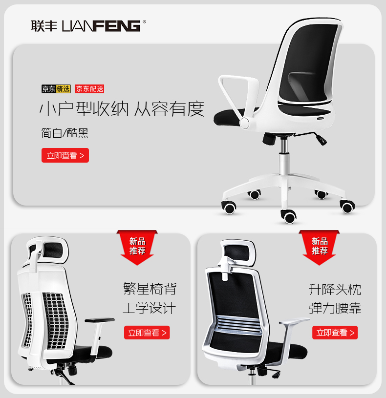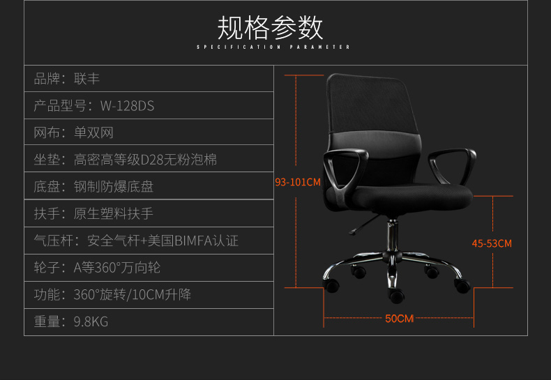 商品名称:联丰(lianfeng) 电脑椅 办公椅子 家用转椅网布职员椅 W-128DS 黑