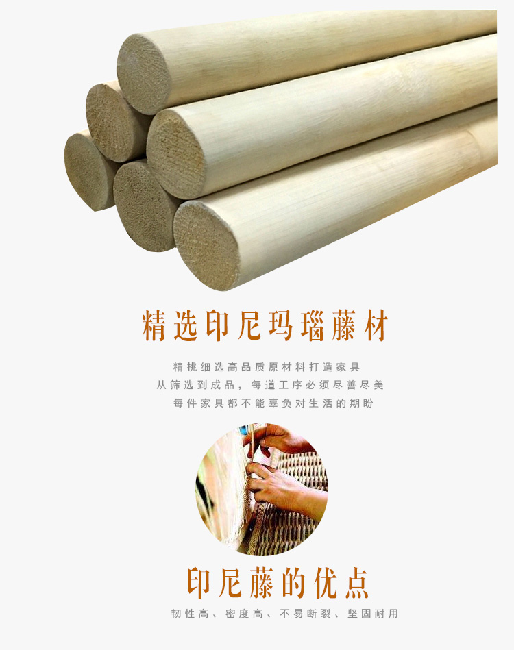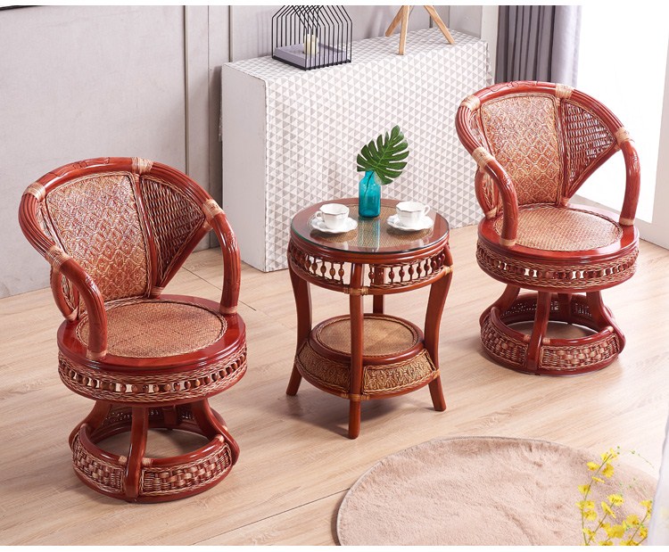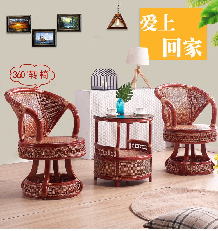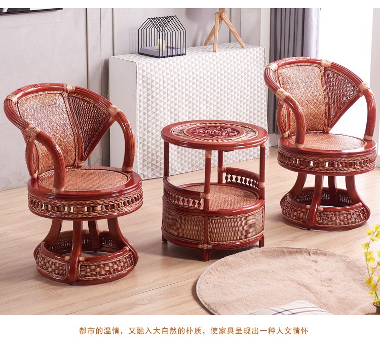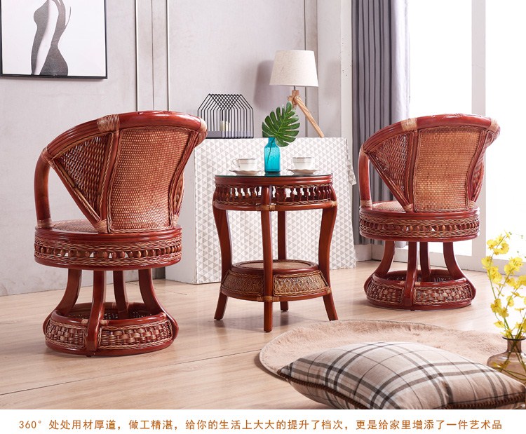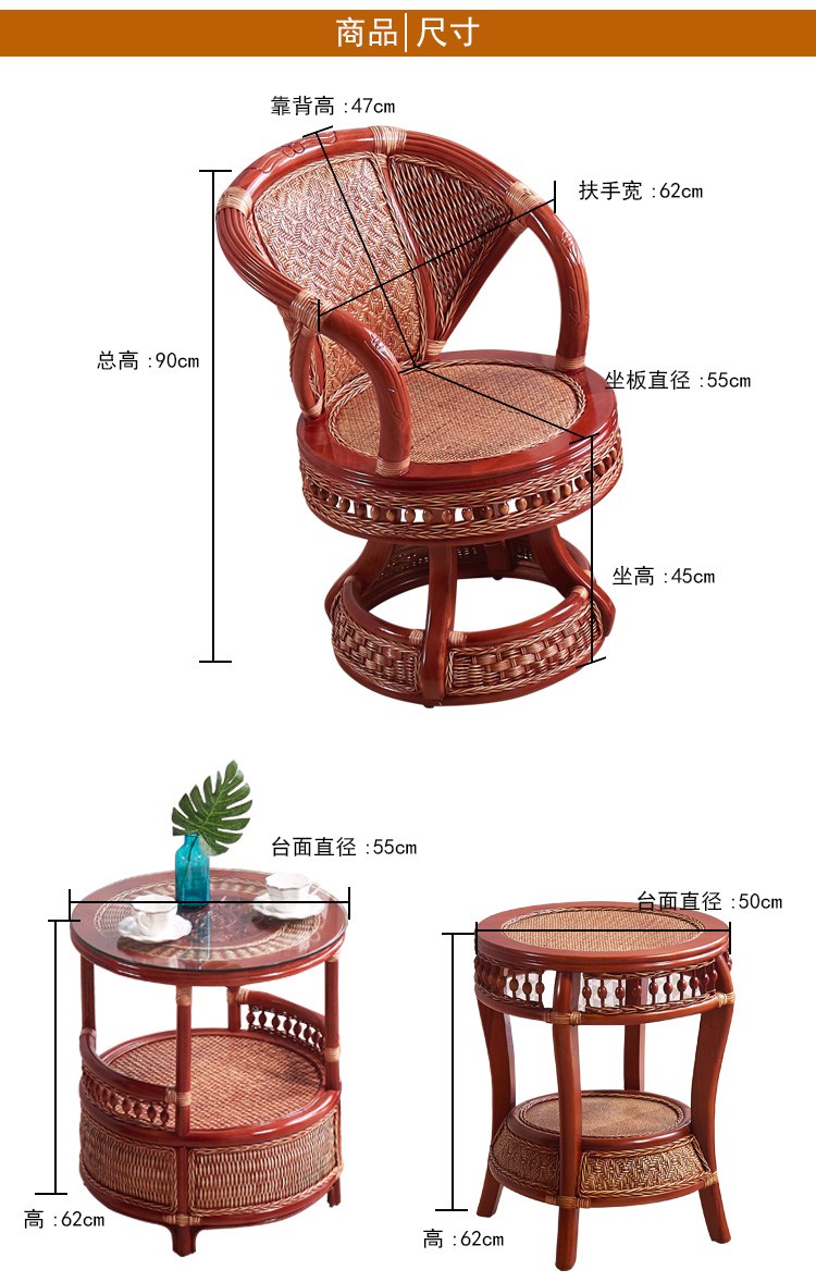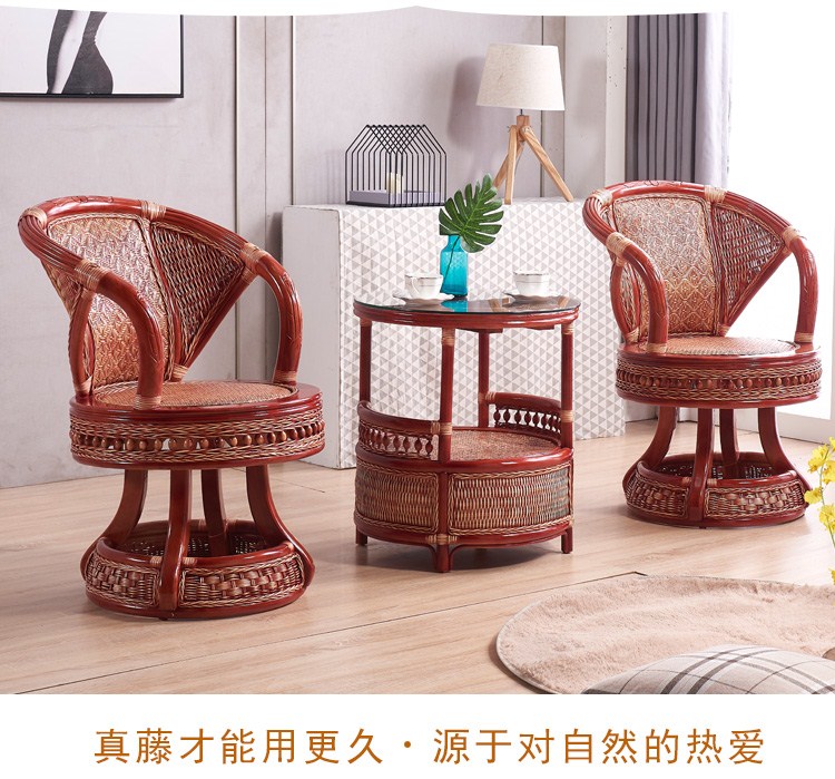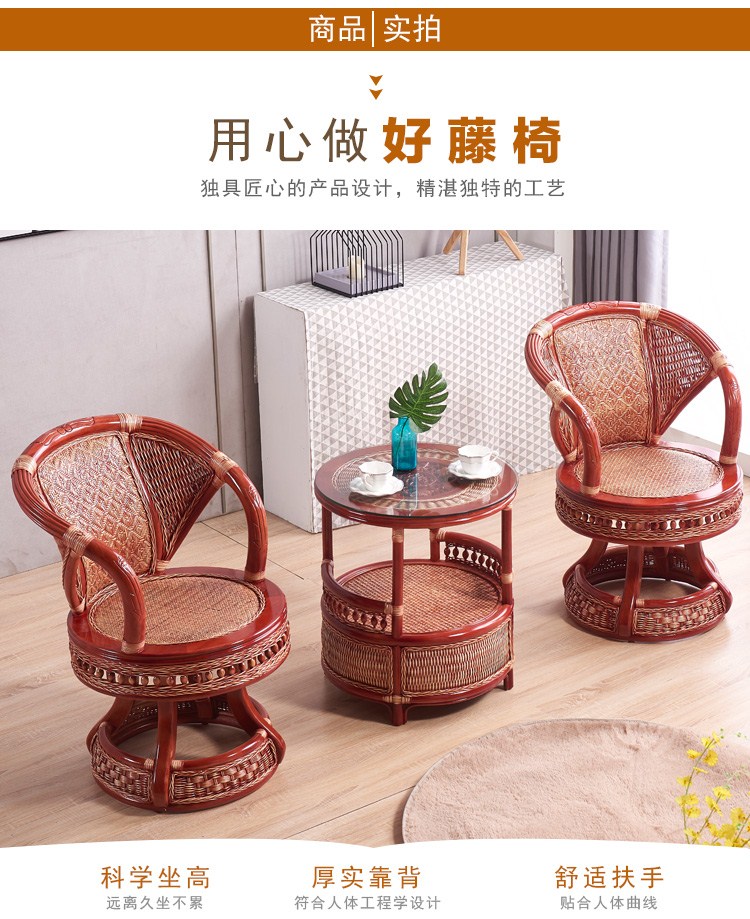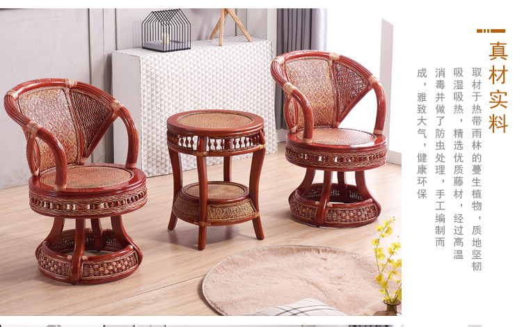 商品名称:少泉 天然印尼真藤椅子茶几三件套 室内阳台桌椅组合藤木休闲椅