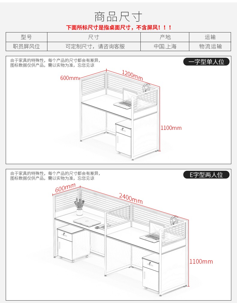 兰冉上海现代简约办公家具员工电脑桌办公桌椅组合屏风职员办公