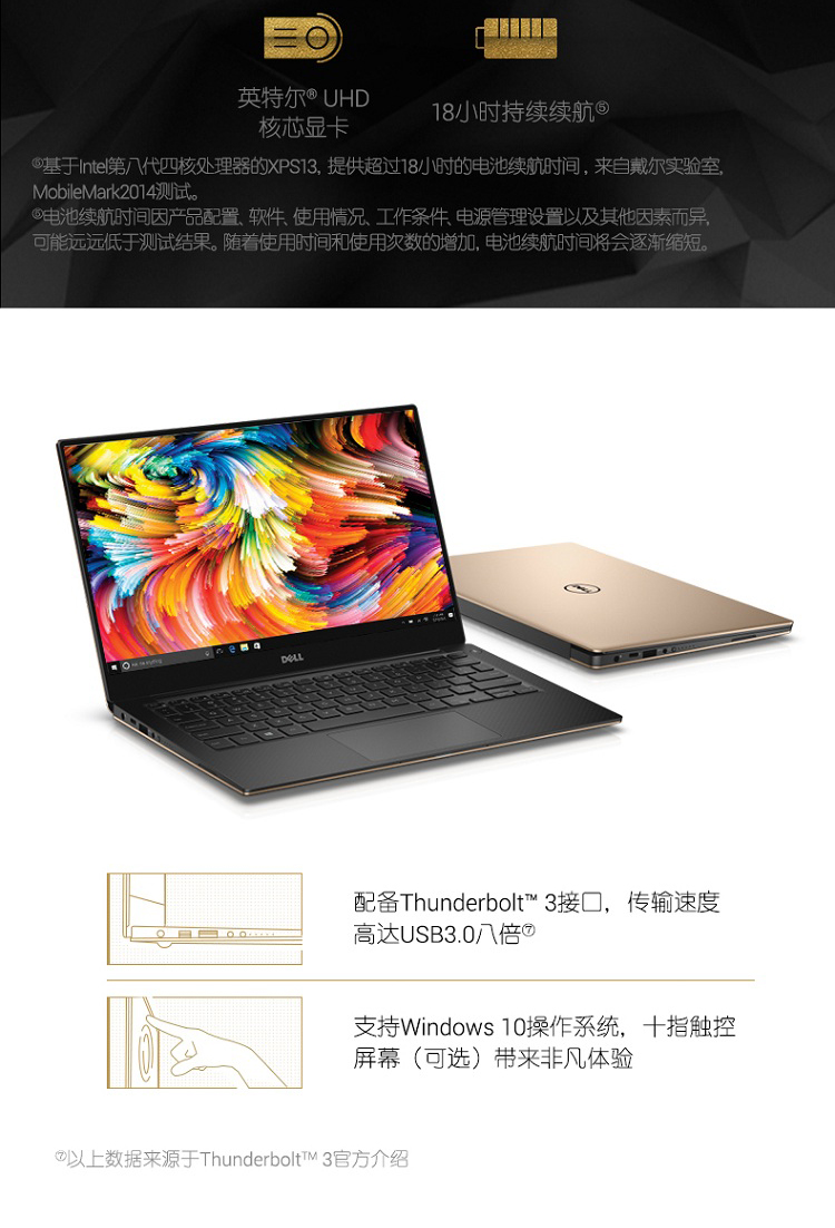 商品名称:戴尔DELL XPS13.3英寸超轻薄窄边框笔记本电脑(i5-8250U 8G256GS