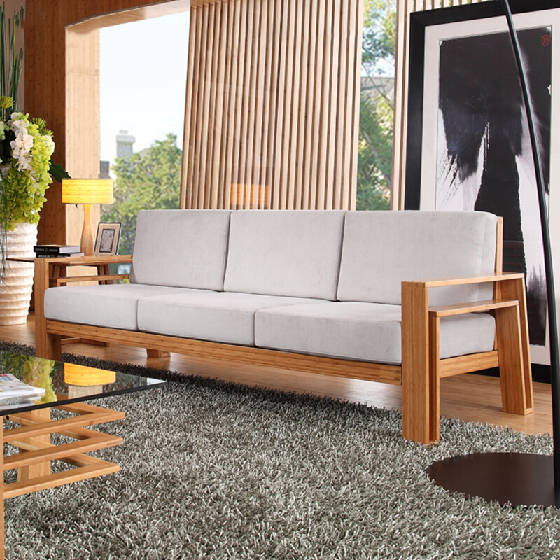 商品名称:品生美实木沙发客厅小户型沙发单人三人位北欧沙发组合竹制日式