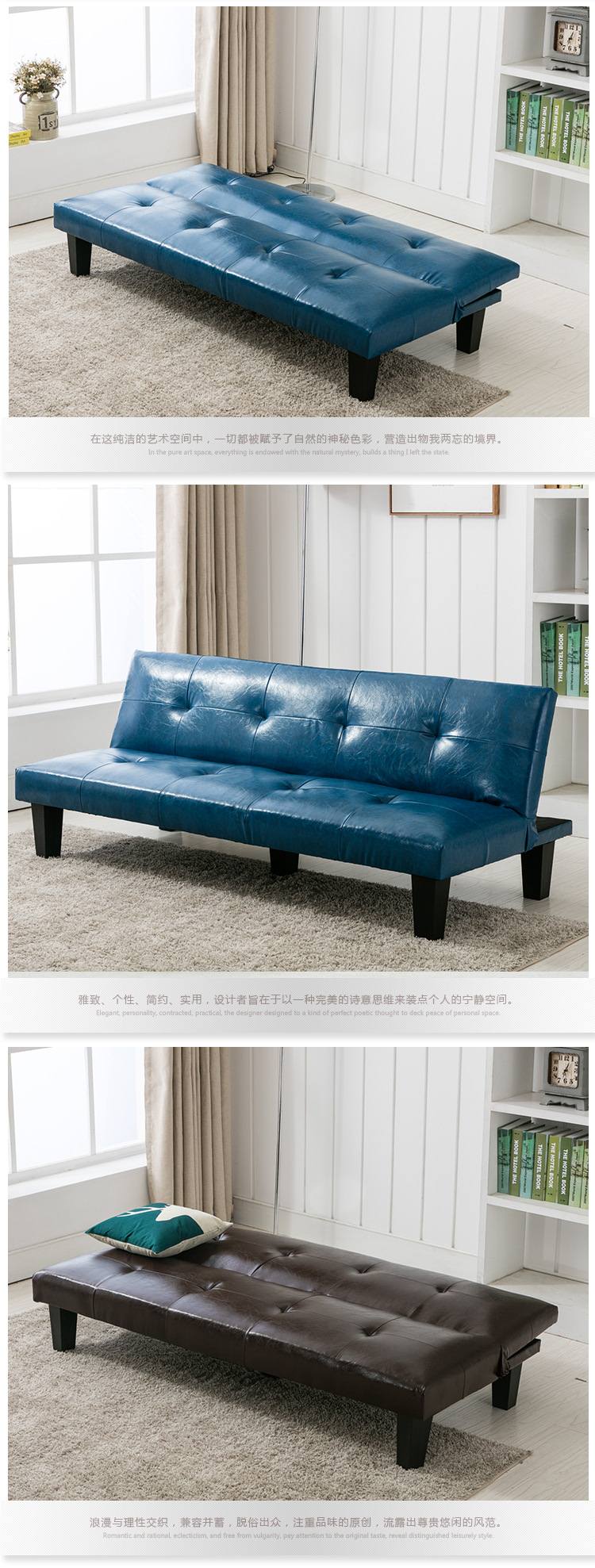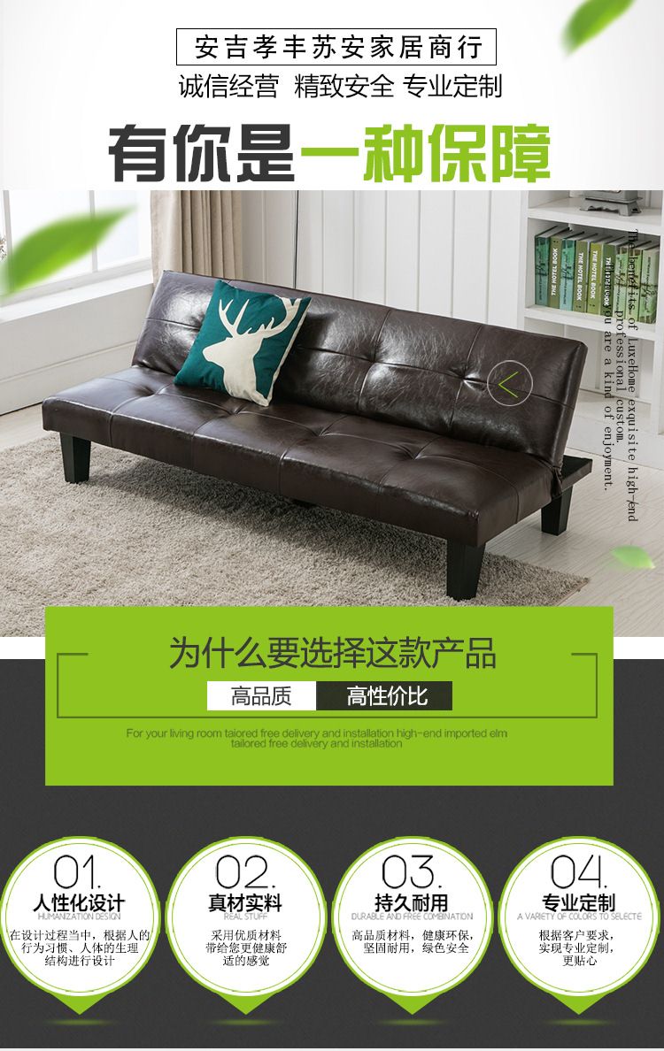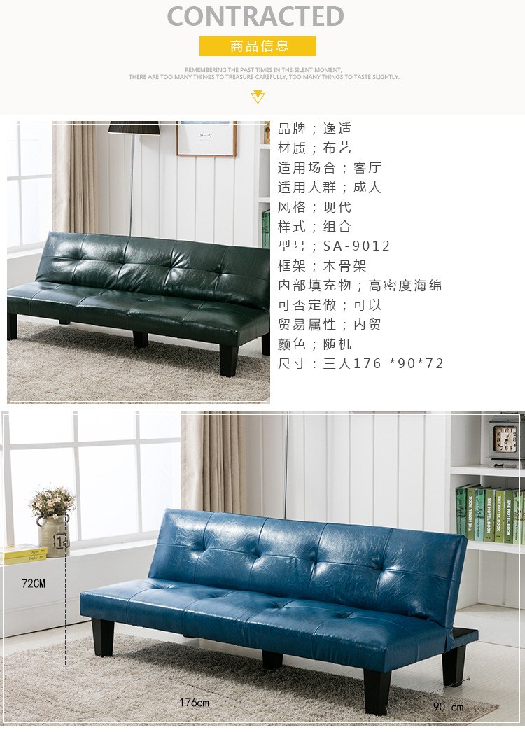 商品名称:多功能折叠沙发床客厅酒店布艺皮艺木骨架沙发高度海绵柔软舒适