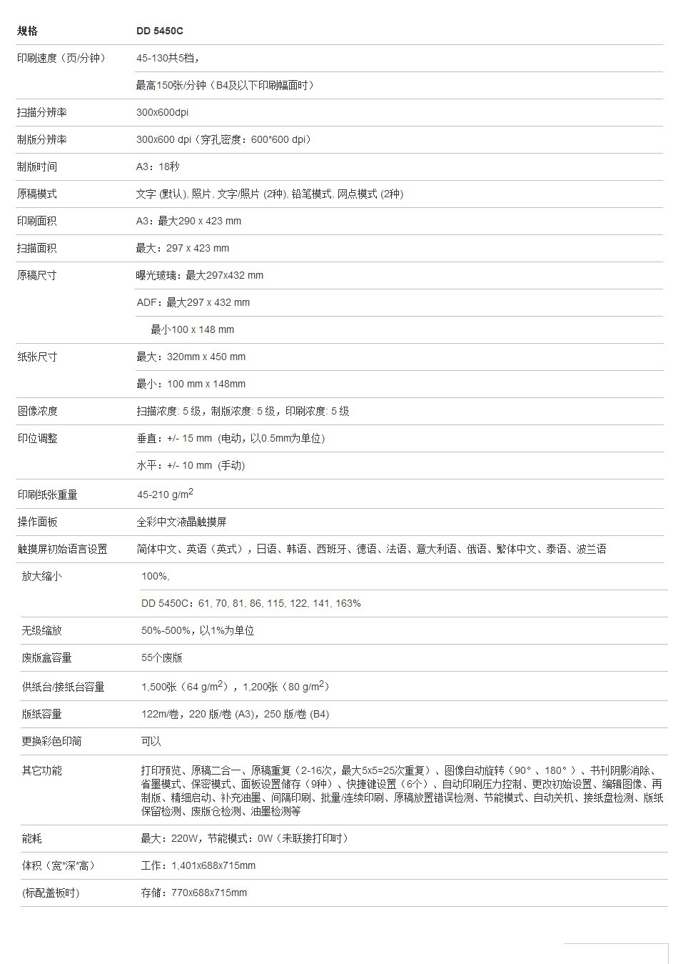 商品名称:理光(Ricoh) DD5450C一体化速印机印刷机油印机 A3幅面替代DD4