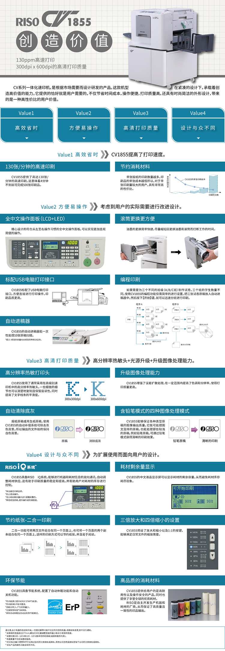 商品名称:理想 RISO CV1855 一体化速印机 免费上门安装一年保修限100万张
